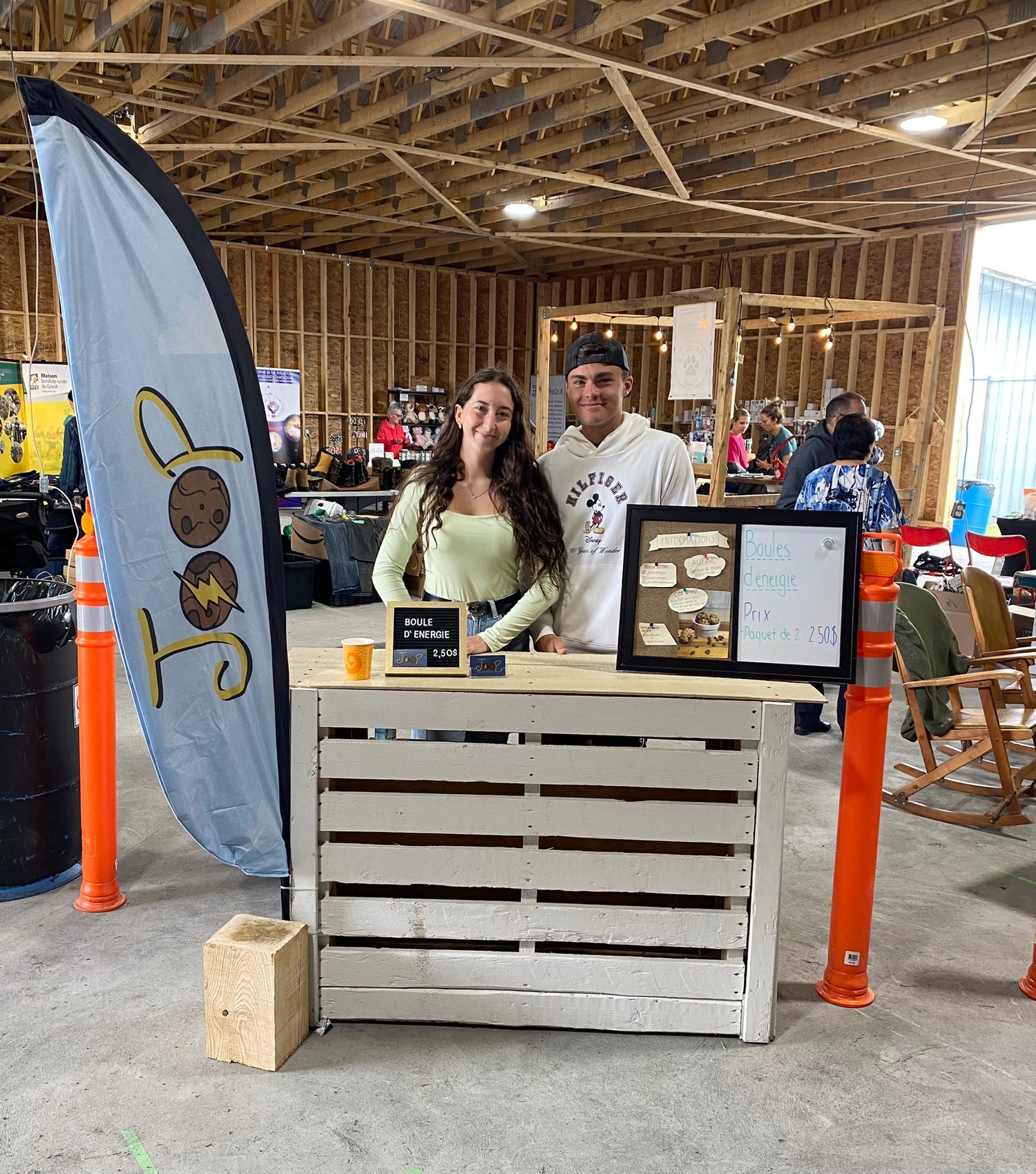 Le projet Joop est né d'une toute petite graine d'idée semée dans l'esprit de deux jeunes rêveurs. En 2022, nous – Xavier et Mia – avons fait une constatation toute simple : comment se fait-il qu'aucune boule d'énergie, une collation à la fois soutenante, nutritive et pratique, ne soit réellement offerte sur le marché ?